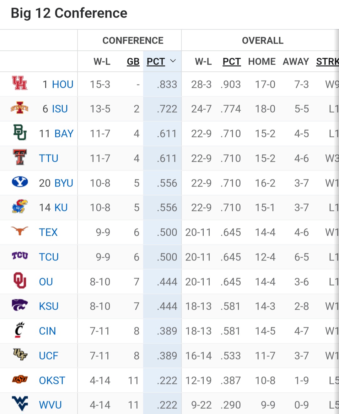 With the win today the Coogs only need two first round tournament wins to reach 30 wins for the 3rd straight season (program best). So much for winning less games in the Big 12.