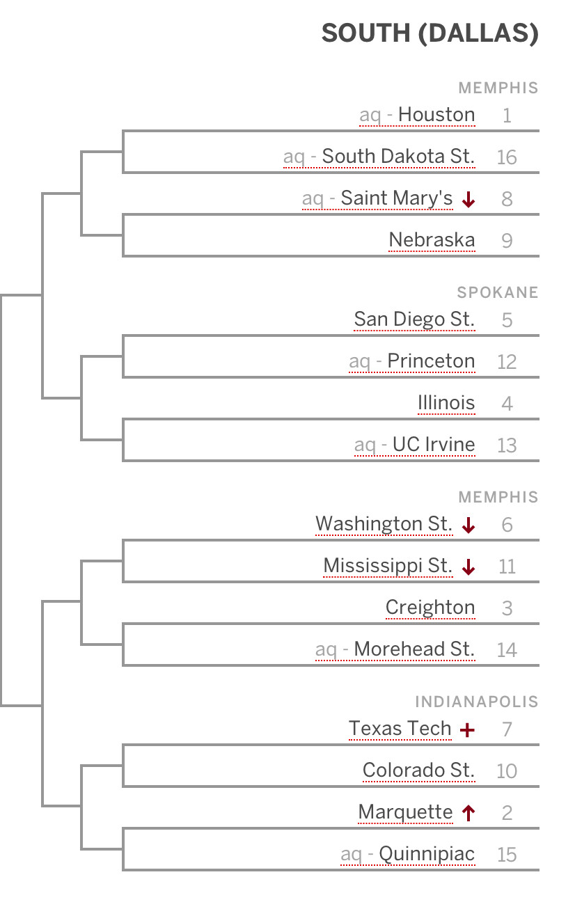Lunardiâs latest bracketâŠis this not ultra ideal having Illinois/SDSU and Creifton/Marquette to get to Phoenix?