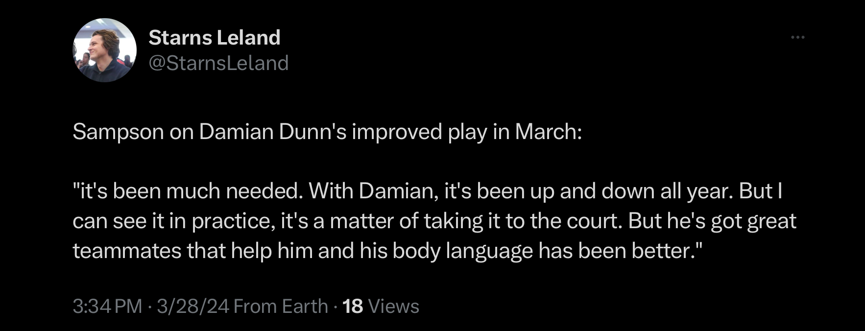 And only because I had conversations with nba scouts myself - this was still in preseason though at the time so I give myself and those scouts some grace.