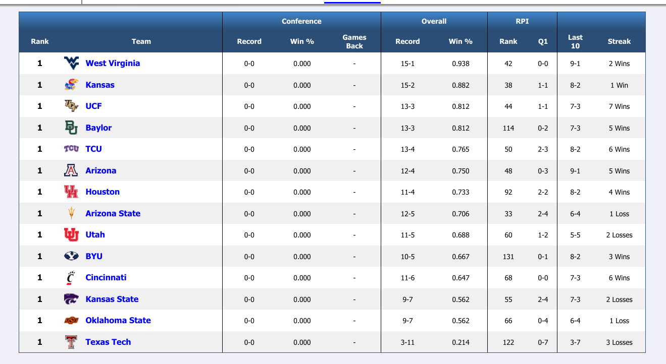 Big12 4th in RPI.