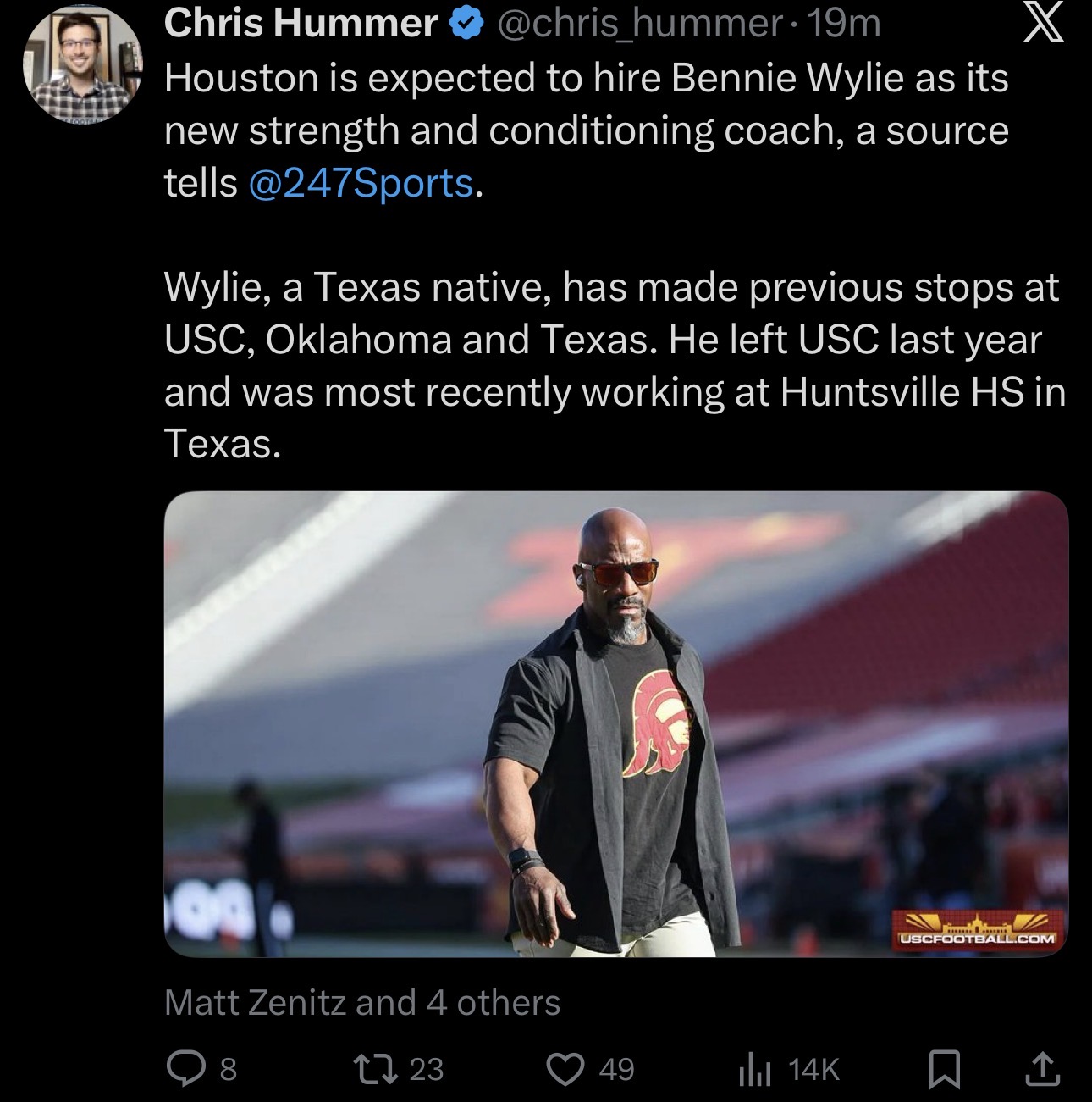 One thing my USC friends seem to agree on, and I have been hearing this for years, is that USC is ātoo softā. I hope UH Basketball S&C Coach Alan Bishop interviewed Wylie. If Coach Bishop gives him a thumbs up, welcome to the UH family Coach Wylie.