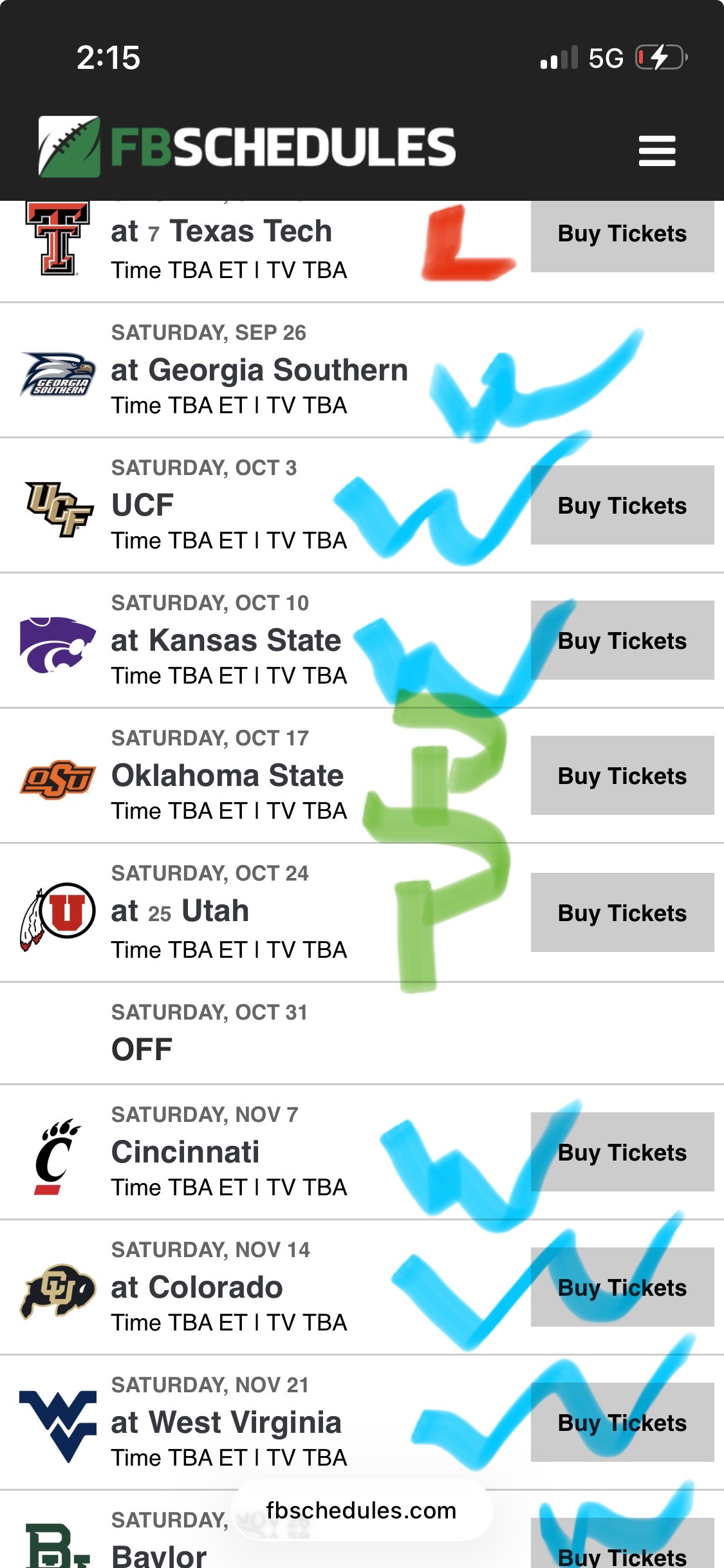 @ Texas Tech — probably a loss. I think Houston has a better QB. But that might be the only position they are better at. The real hope is that because Houston has continuity they can pull off the W. Sorsby, IMO, is like the 6th or 7th best qb. I know that’s controversial.
