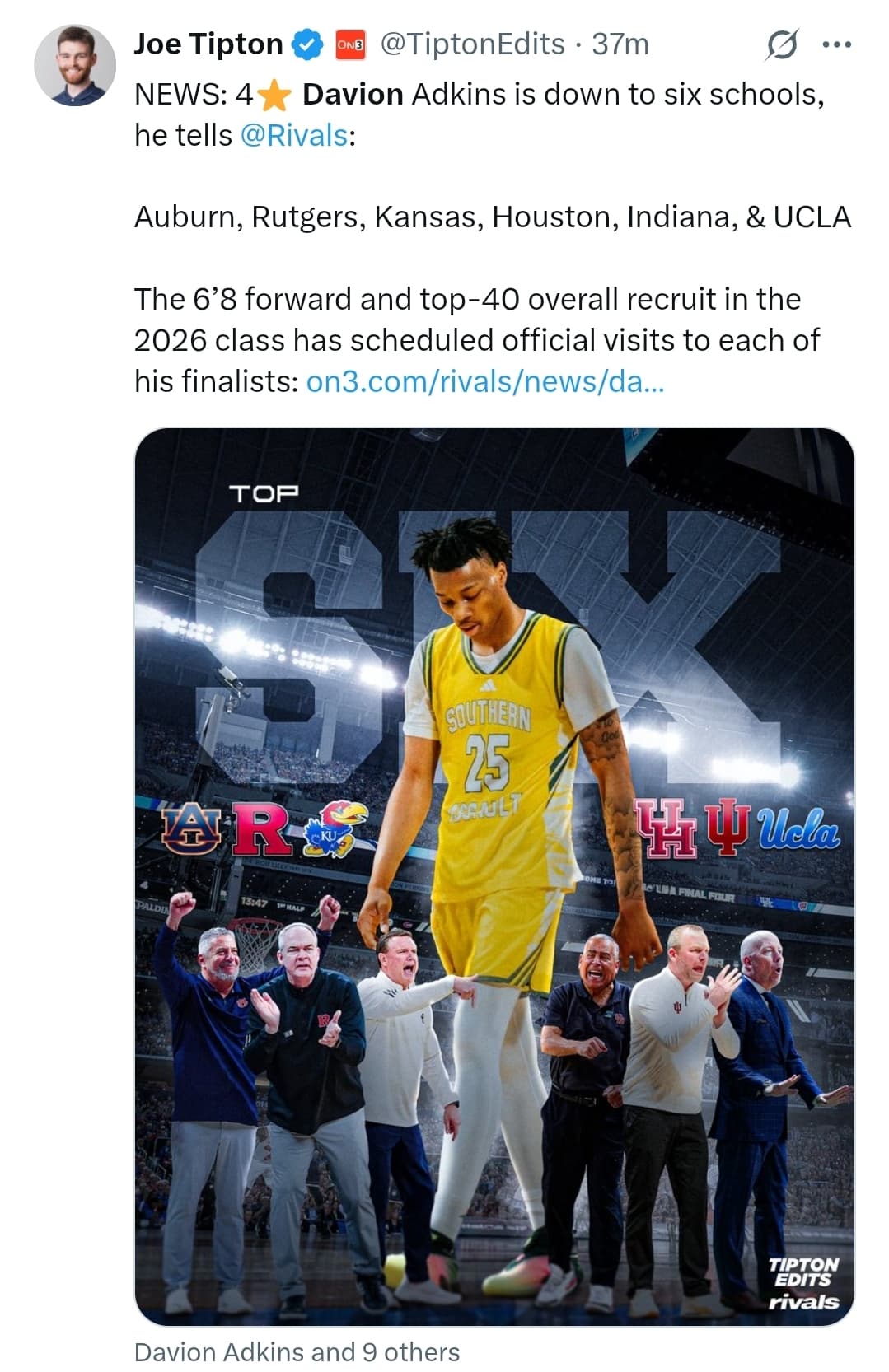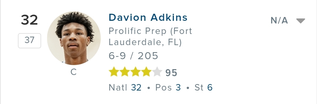 Davion Adkins has us in his top 6. A guy that has been pretty quiet in his recruitment.