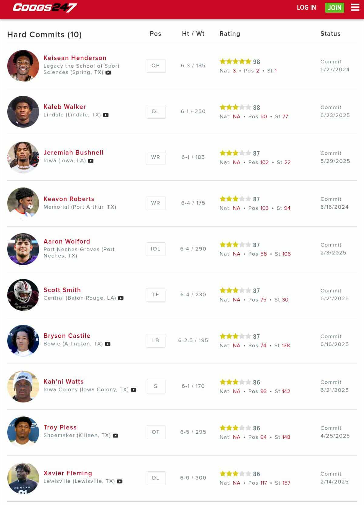 We are seen as the favorites to land 4 star Paris Melvin jr. Get him on the fold and we can be looking at a all timer class in Houston. One that could top the 2016 class.