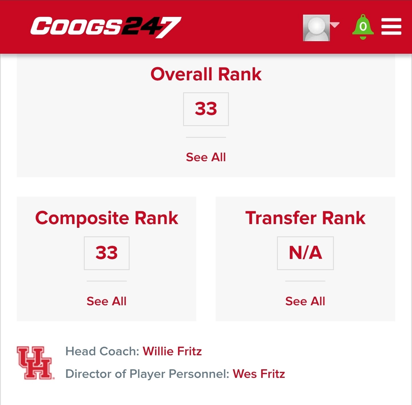 If I’m not mistaken I believe that technically the class is currently ranked in the 20’s by 247. The 33 next to UH is the composite ranking while underneath it is the 29 in the box which signifies the 247sports ranking.