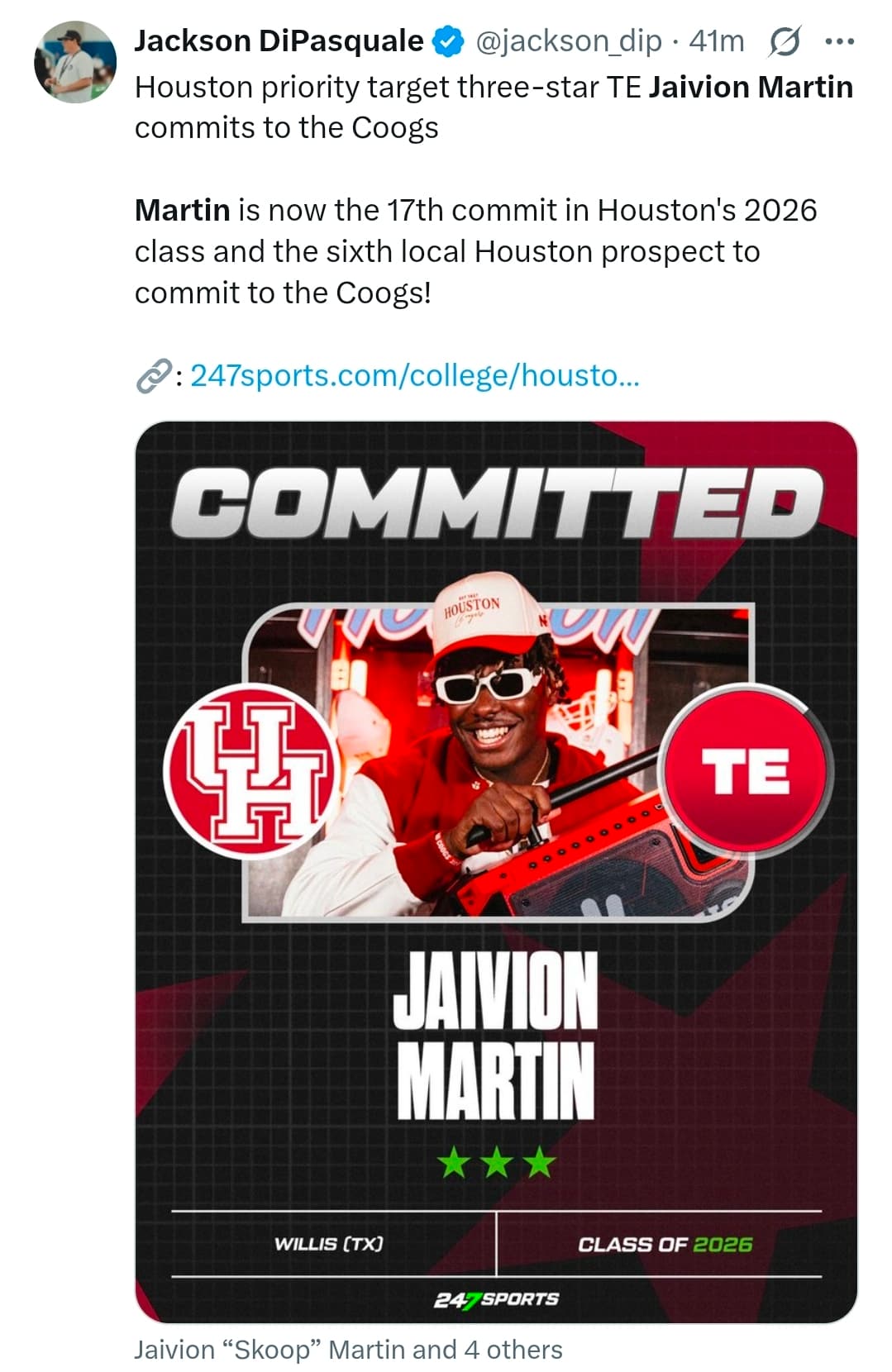 Welcome to the Coog family Jaivion! I am looking forward to seeing you play.