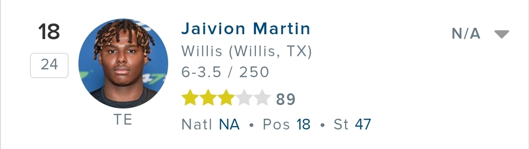 Jaivion is a high 3 star so our recruiting ranking went up to 33. I think this is our highest ranking ever.
