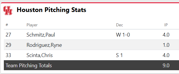 lead off double followed by an RBI single here in the bottom of 4th. Knocked out talented WF starter thru 3+… 5-0 Coogs
