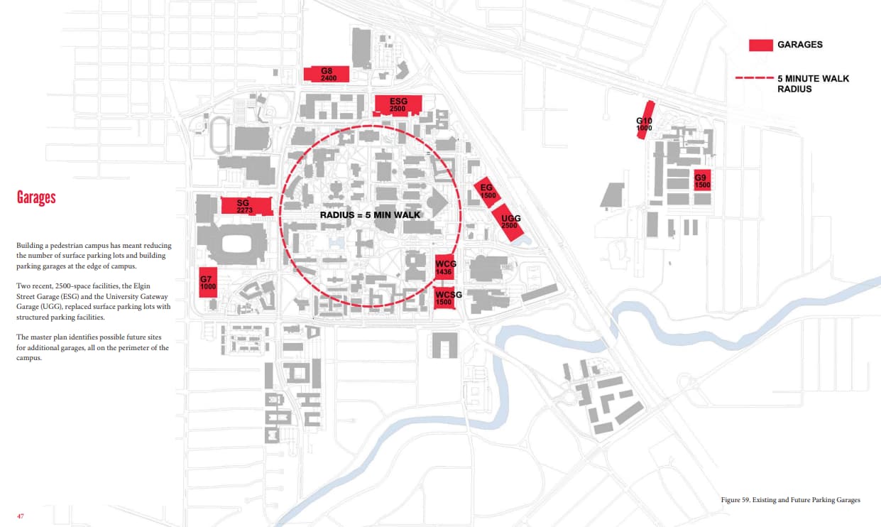 The whole theory around building these parking garages is to free up space for greenspaces, and buildings along with keeping the campus an enclosed space for pedestrian walkability. Meaning instead of remembering UH being one giant parking lot, itâs now ingrained as a garage with nice greenspace outside it.