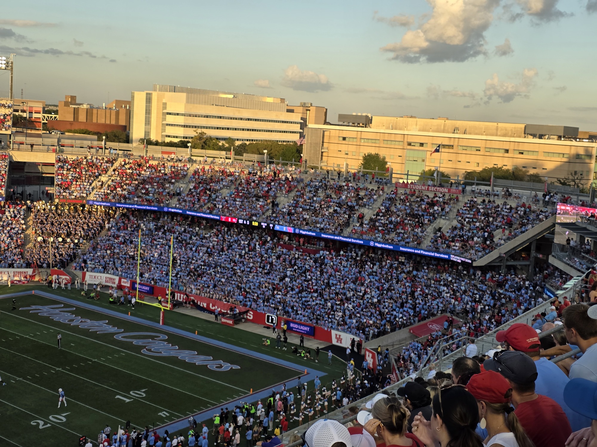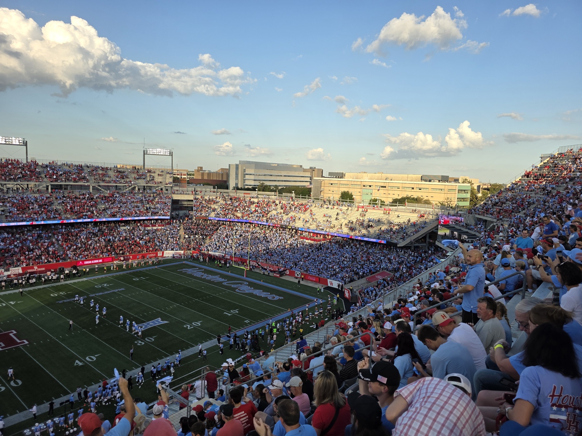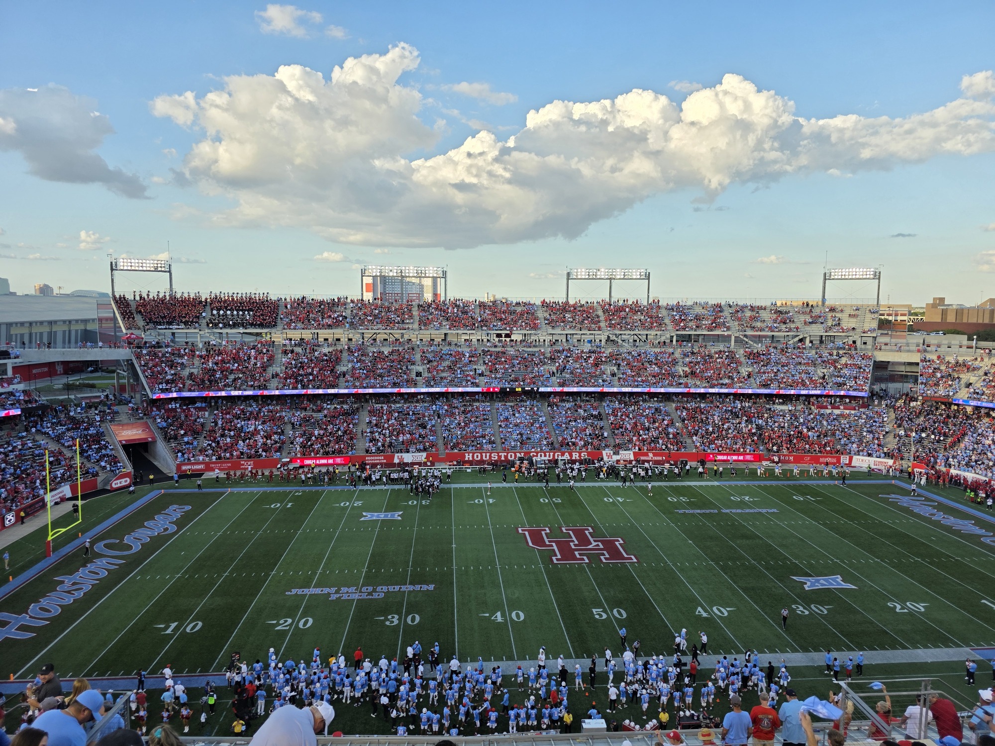 Who can say how many Tech fans were there? There was not a ton of blue on the North side. I was surrounded by Tech fans on the South side. End zones were likely 95% Coogs. I’ll guess 30-35% Tech fans but who cares. It was a great atmosphere!