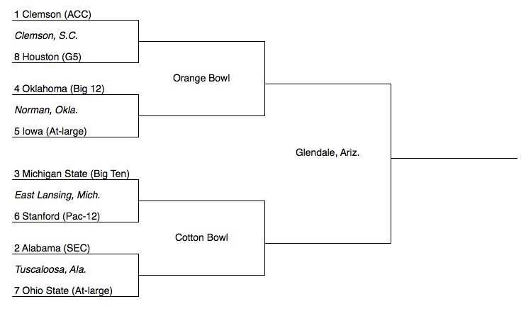 However, I think the only reason the G5 rep is being mentioned in an 8 team scenario is because CFB power-brokers know that there would be Congressional action again if the G5 is left out (like there was in the BCS). Better to throw a bone and hopefully placate those folks before things get out of hand.