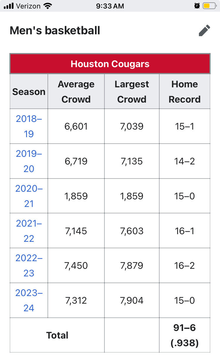 So it appears that our Home Game record, once Hofheinz opened, was very similar to our Fertitta Center record.