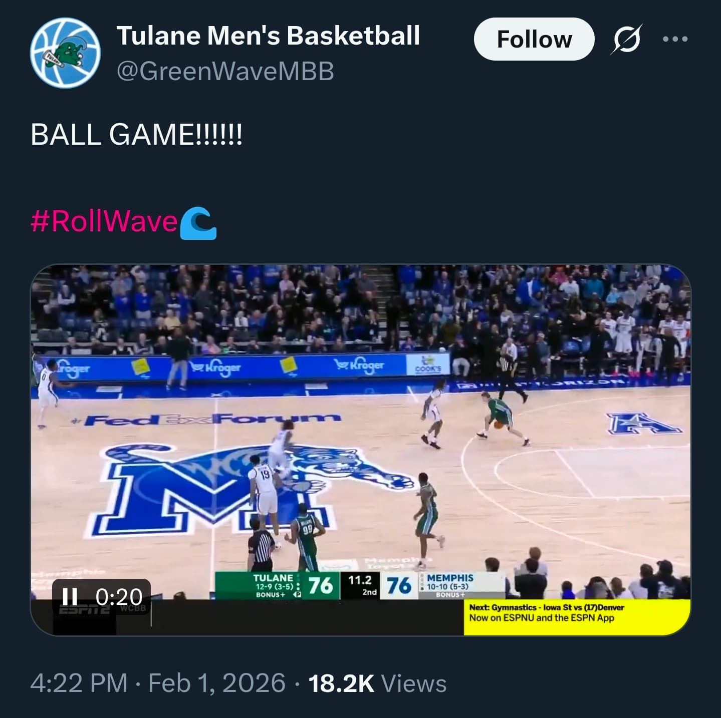 https://x.com/GreenWaveMBB/status/2018087697198292995?s=20