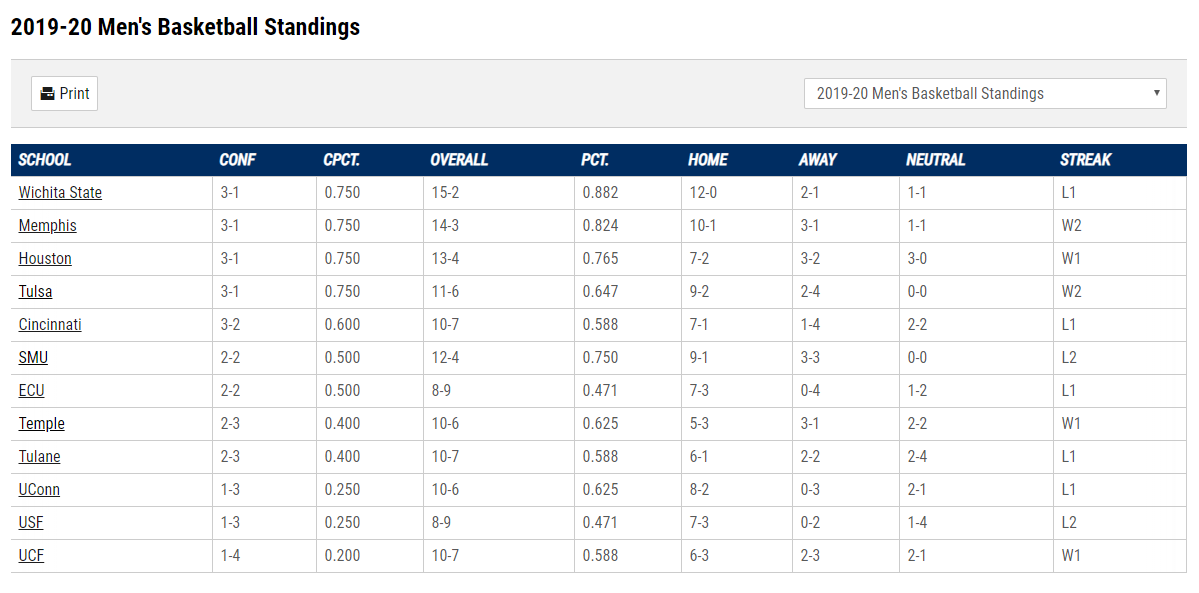 Updated standings. Would be nice to had the Shockers their first home loss this season but it will be tough.