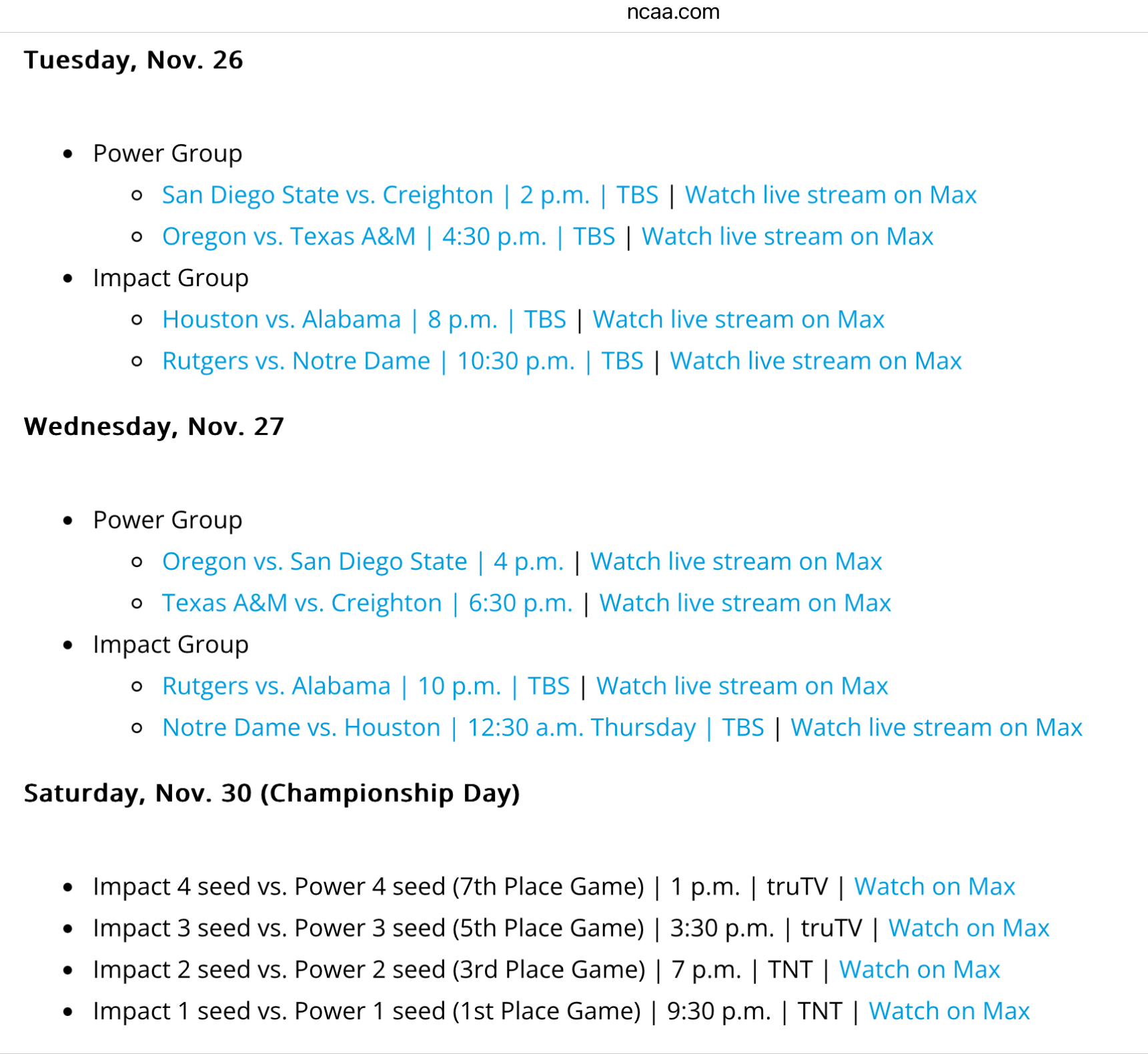 In looking at 2 different sources, I cannot find any TV listings for the UH basketball games in Las Vegas. Am I missing something?