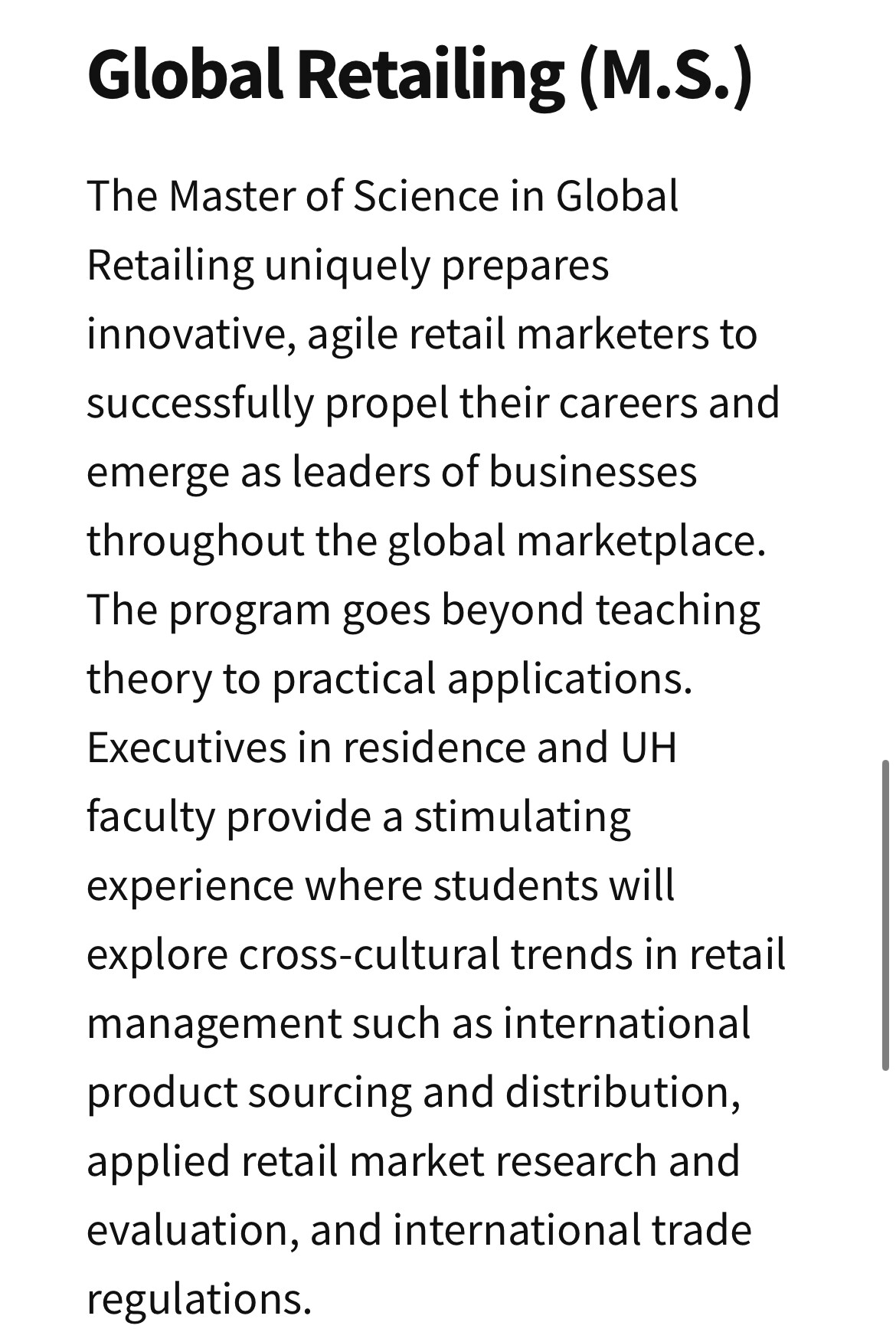 My undergrad is in consumer sciences and merchandising which turned into consumer science and retailing. The masters is global retailing. Lots of athletes in there with me.