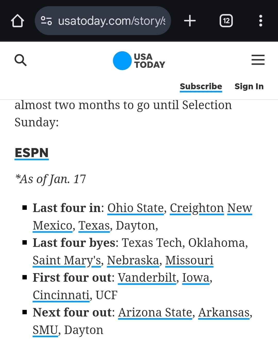 Well, we dropped as far as #15. We haven’t lost since. We’re up to #7 in the AP poll. You look at Net rankings and we’re near the top. All the experts still have us as a #4 seed, still behind Kansas.