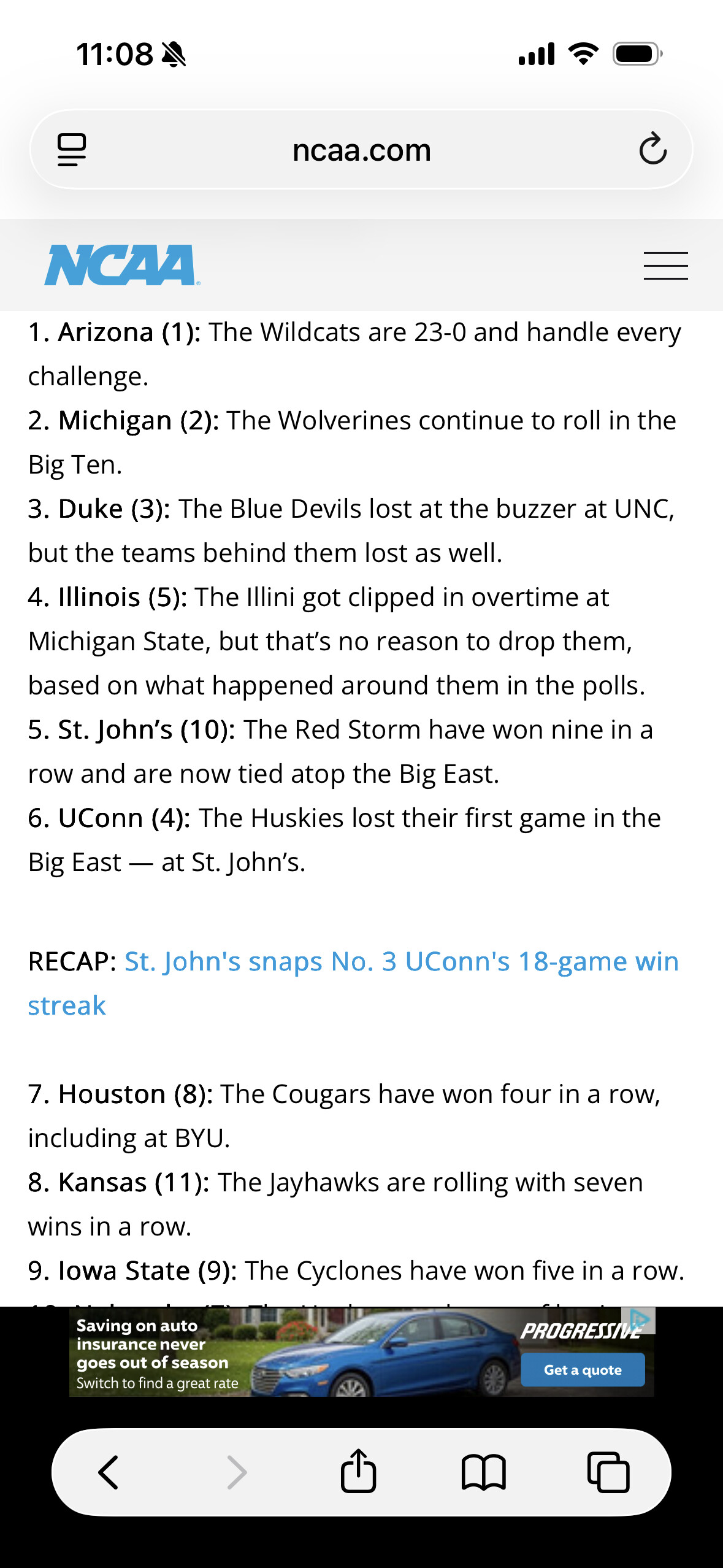 So Mr Katz moves St Johnâs from #22 last week all the way up to #5.