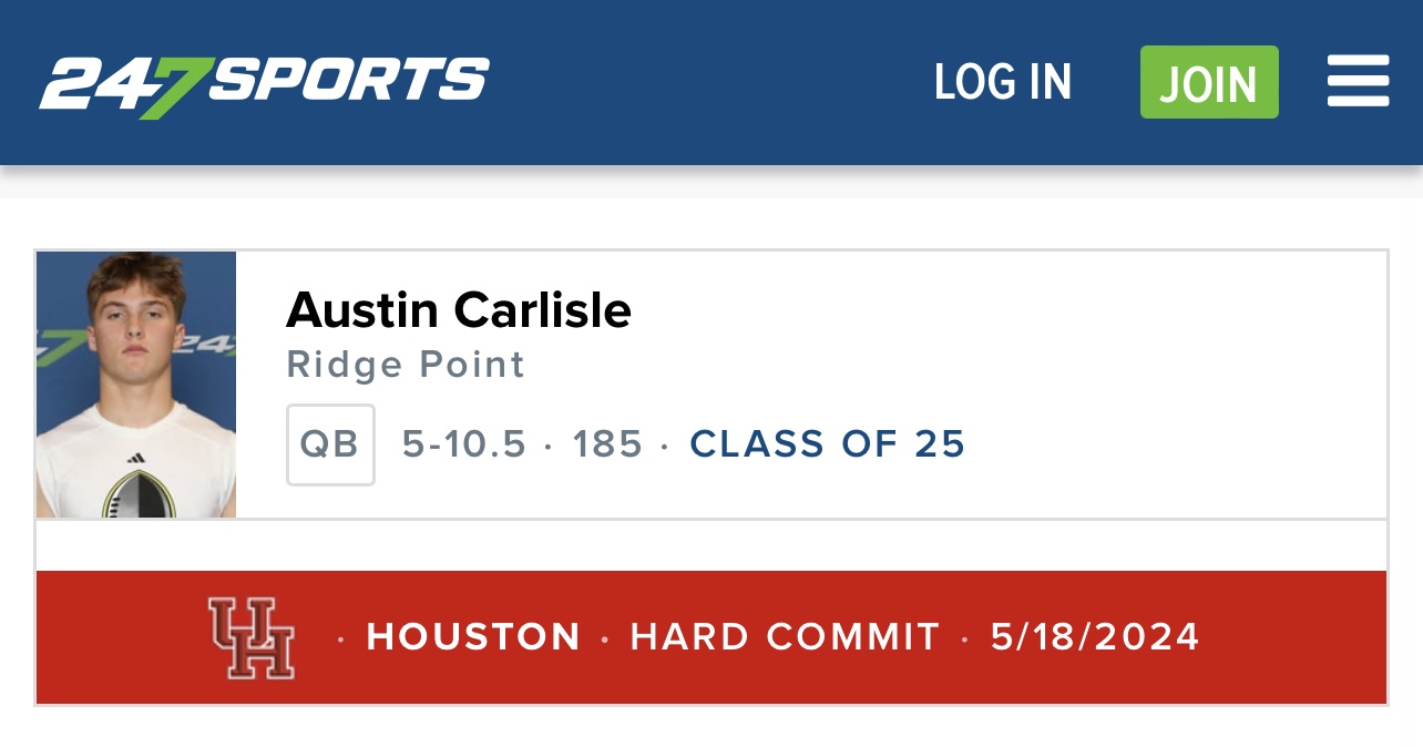 I’ve seen him play at Ridge Point. He is a very good athlete for his size but I do think he might end up being a WR or RB in college. Ridge Point had a QB lined in place a couple of years ago but he ended up transferring to Episcopal (and is now going to UCLA in football/track). Carlyle stepped in right after Karson Gordon transferred and they didn’t miss a beat. They had great receivers last year (one going to A&M, one to Baylor, and the best of the three I think was their junior).