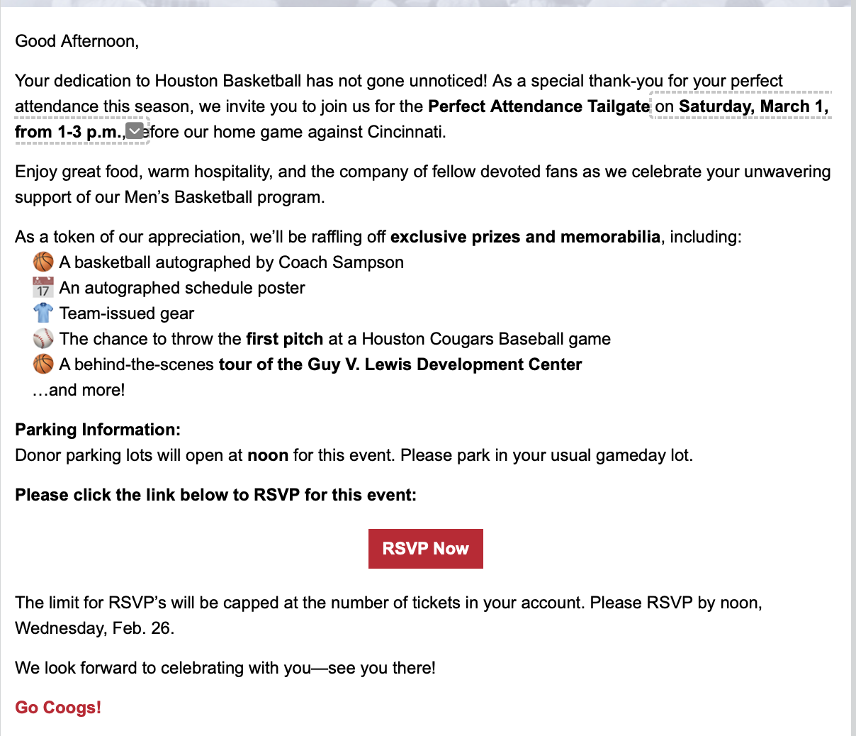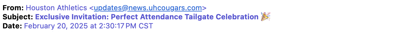 What event was that? I got an email last month congratulating me on perfect attendance so far, but nothing for an event? Had perfect attendance last season too, but never any sort of invite.