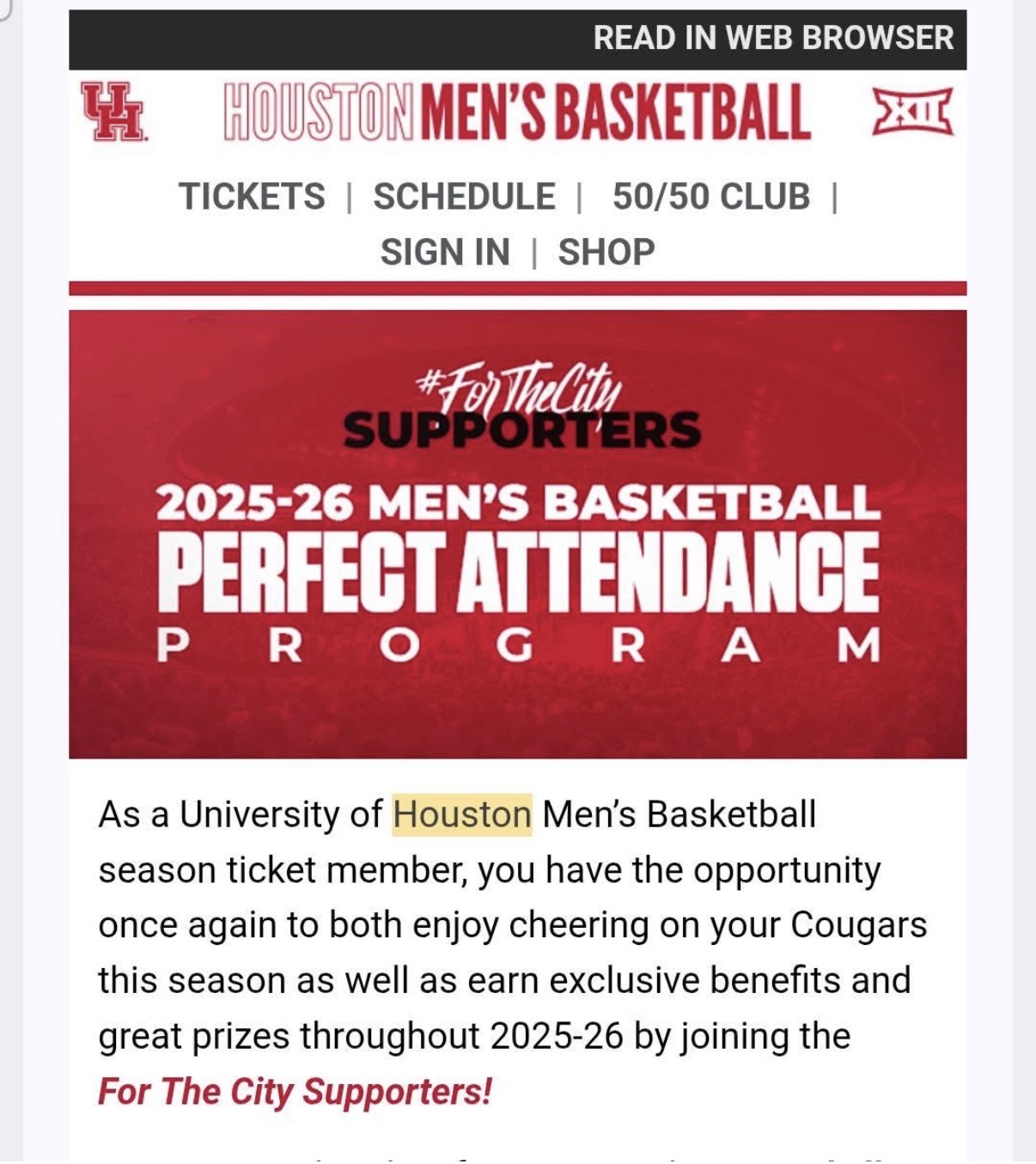 Another example is the 50/50 Club gear that never showed up this season. It’s not like I actually needed another 50/50 shirt or whatever, but to increase the annual minimum 50/50 Club donation by 50% and then deliver nothing more than some surreptitious sideway excuse about why no gear appeared amounts to flimflamming some of our basketball program’s best supporters. Even an apology would be better than some it’s-not-my-fault/it’s-not-my-job type of let’s just ignore this and go on to ask for the next donation approach, which seems to be how UH deals with this sort of thing.