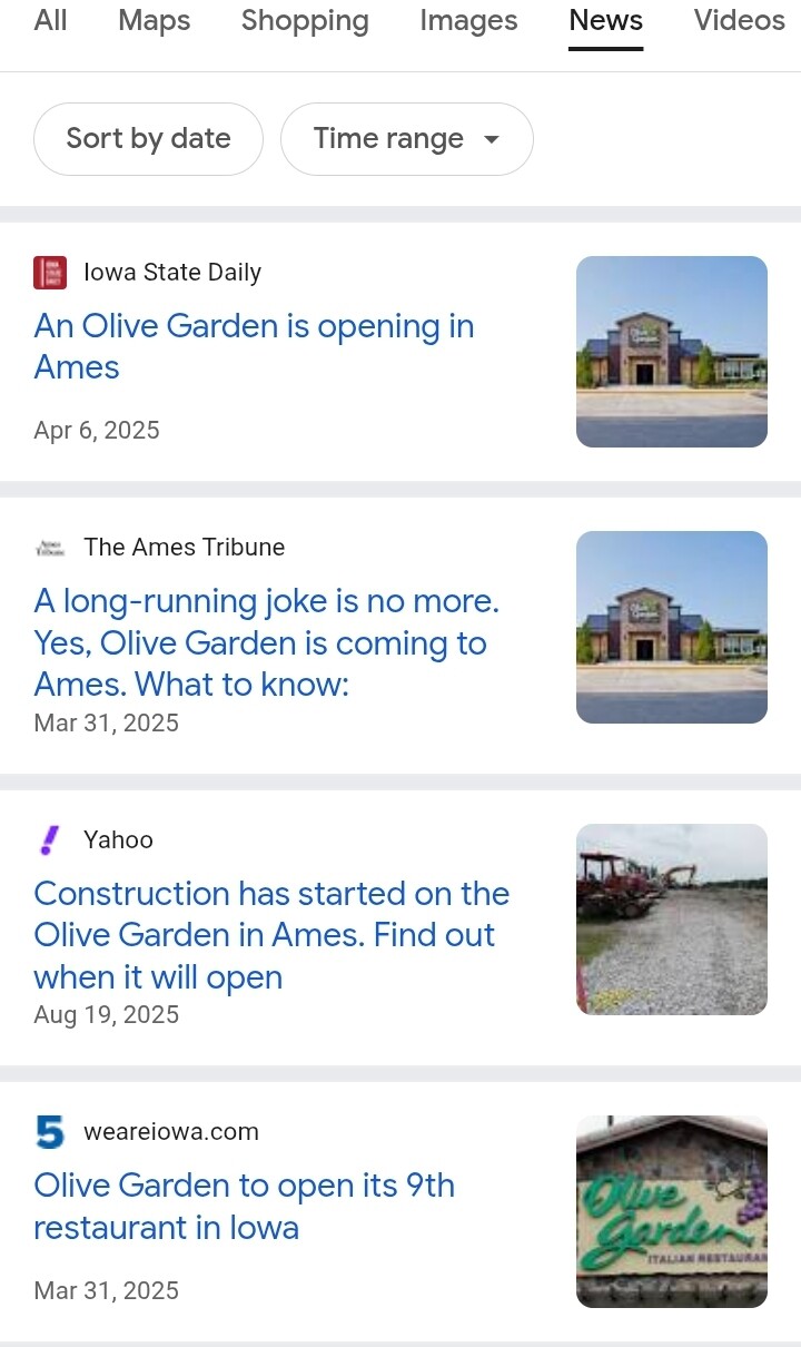 I guess a new Olive Garden in Ames is really big news.