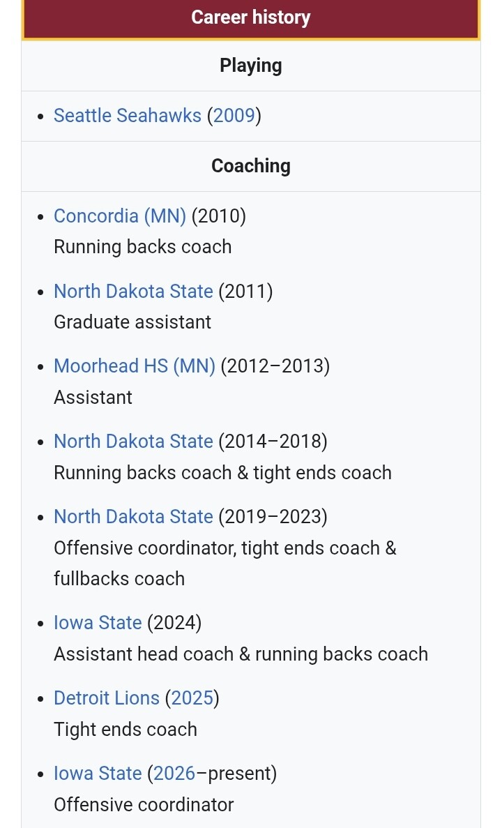 Other than he was the 2x FCS Natty Champ football coach at SDSU when TJ Otzelberger was there. And he had Otzelberger’s full respect, recommendation, and endorsement. (Which matters to a decent extent, for obvious reasons)