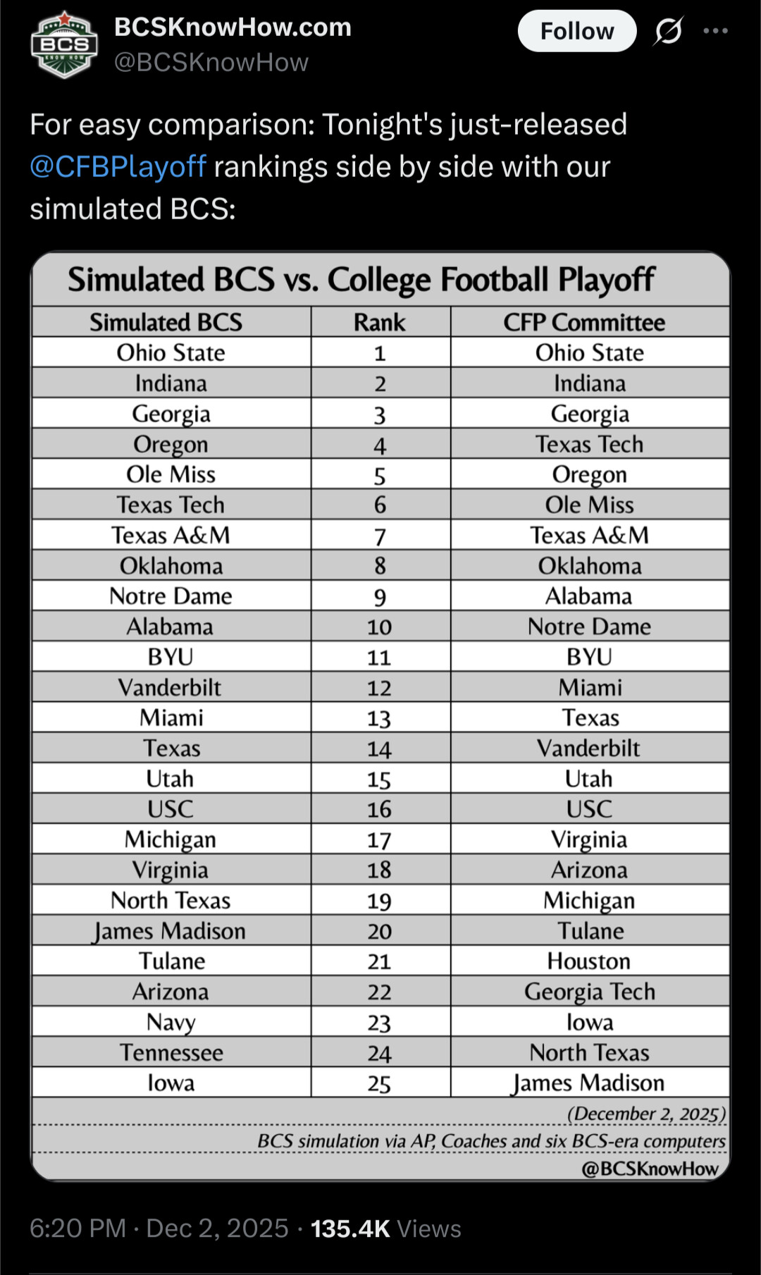 So you want the bias to be codified? Insane take. People are calling the committee out for the byu mess. I’d argue Utah should be on the bubble and byu should be in no matter what. There should be 3 big12 teams in the playoff.