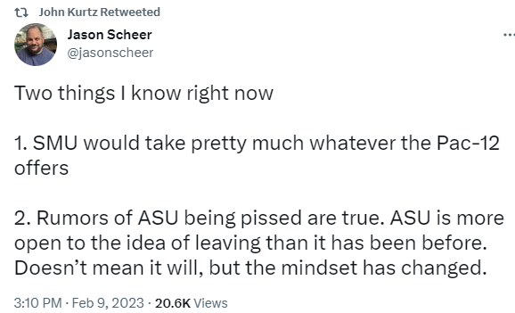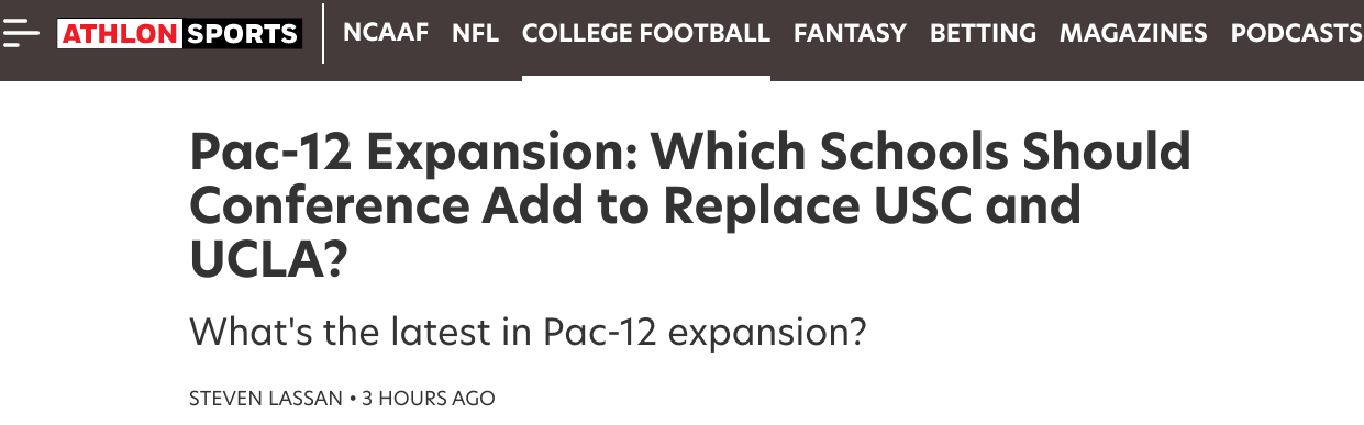 Yeah, Iād take any combo that would be best of Pac. Just going with 4 corners as they are schools B12 has reported interest in.