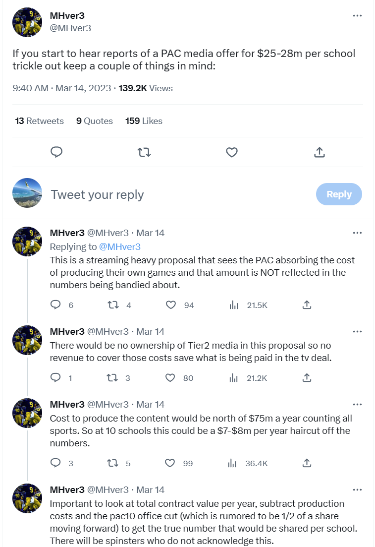 The PAC has spent the last 9 months spewing propoganda that is ultimately proven false, so at a point (right now) where the PAC looks so pathetically weak in national media, i cant for the life of me, imagine how the PAC wouldn’t intentionally leak a competitive tv contract package if they had one. If they had a decent contract on the table then town criers would be shouting “hear ye, hear ye!..32 million dollars per school annually for 6 years and Oregon and Washington agree to a 15 year GoR” LOL