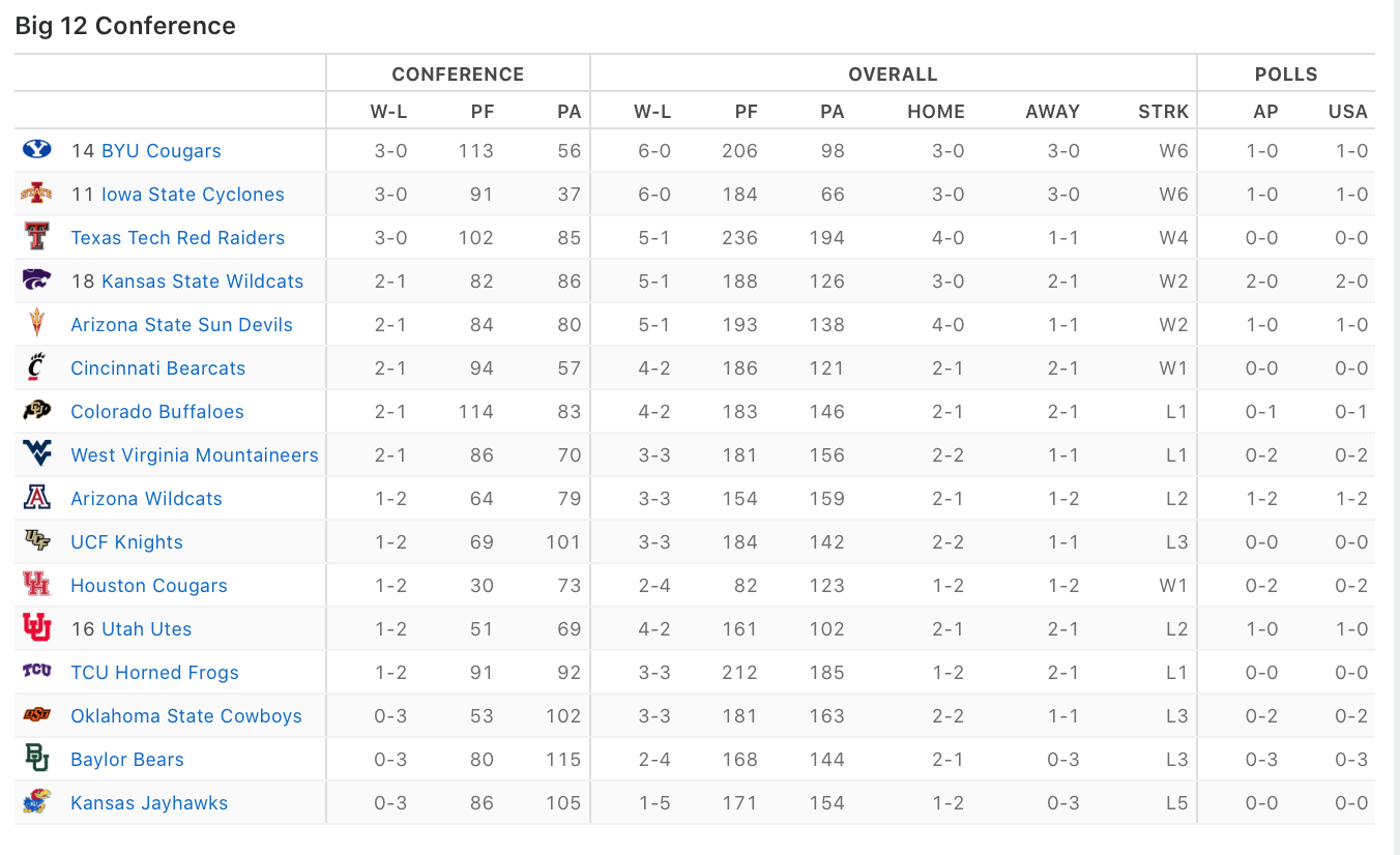 Hold on to your britches, gonna be a lot of 1-2 big 12 records after this weekend!