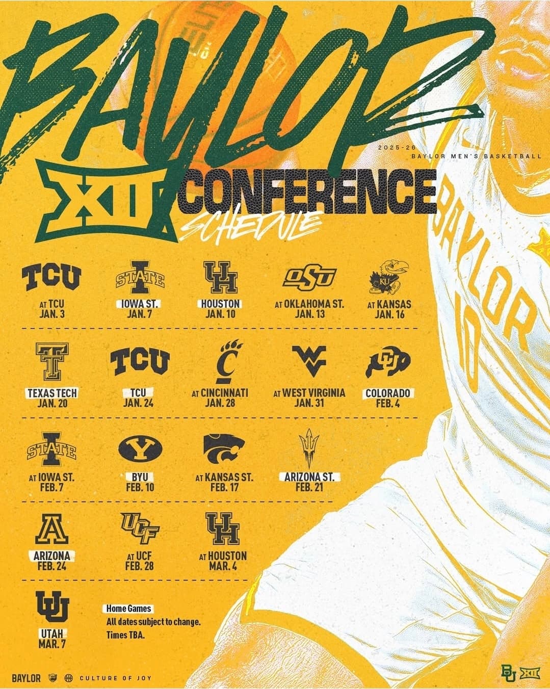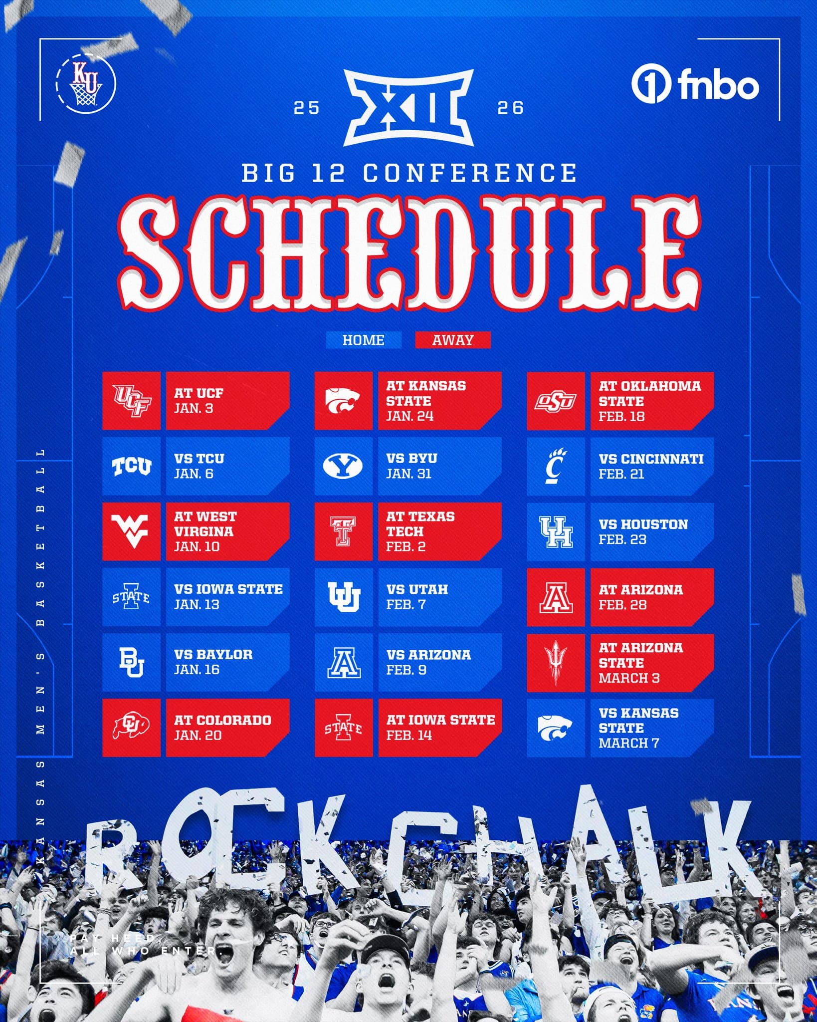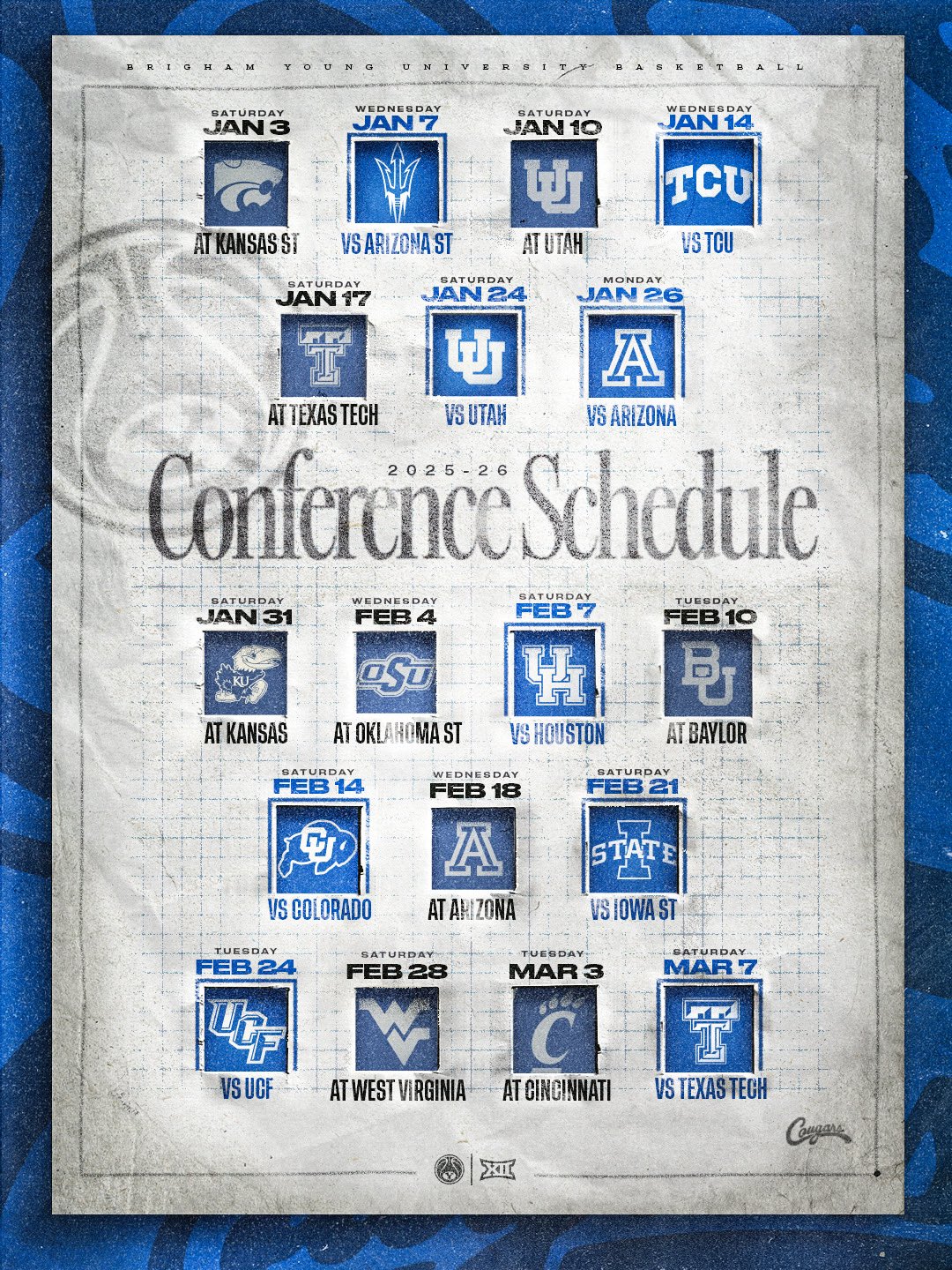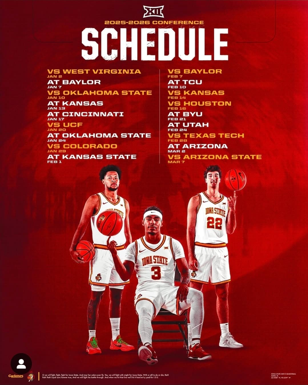 Iowa State, difficult start to conference play. 3 of their first 5 games. At Baylor, At Kansas, at Cincinnati. I think they have a tough schedule overall. Their back half of their schedule. Huge home games: Baylor,Kansas, Houston & Texas Tech. And then at BYU, at Arizona. Gotta stay healthy. Tough 9 game stretch to finish the season