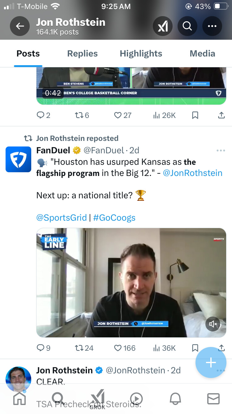 Utterly idiotic for Rothstein to say such a thing. He should know that if UH wants to be the New Kansas then they should finish * checks notes * sixth in conference. Let’s be serious here. /s ![]()