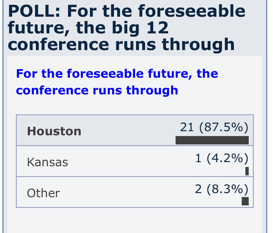 So who knows what next season looks like even with the incredible class we have coming in. So saying the Big12 runs through UH next season seems premature.