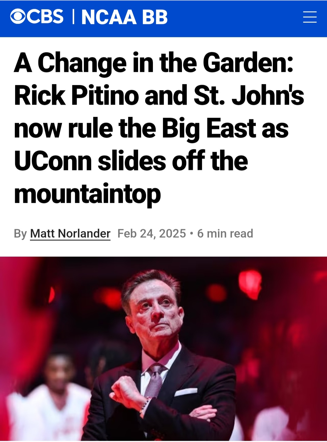 I didn’t say it was the same thing. Just posted an article where this writer is now claiming that St John’s kicked UConn off the “mountaintop” and that they’re now the kings of the Big East.