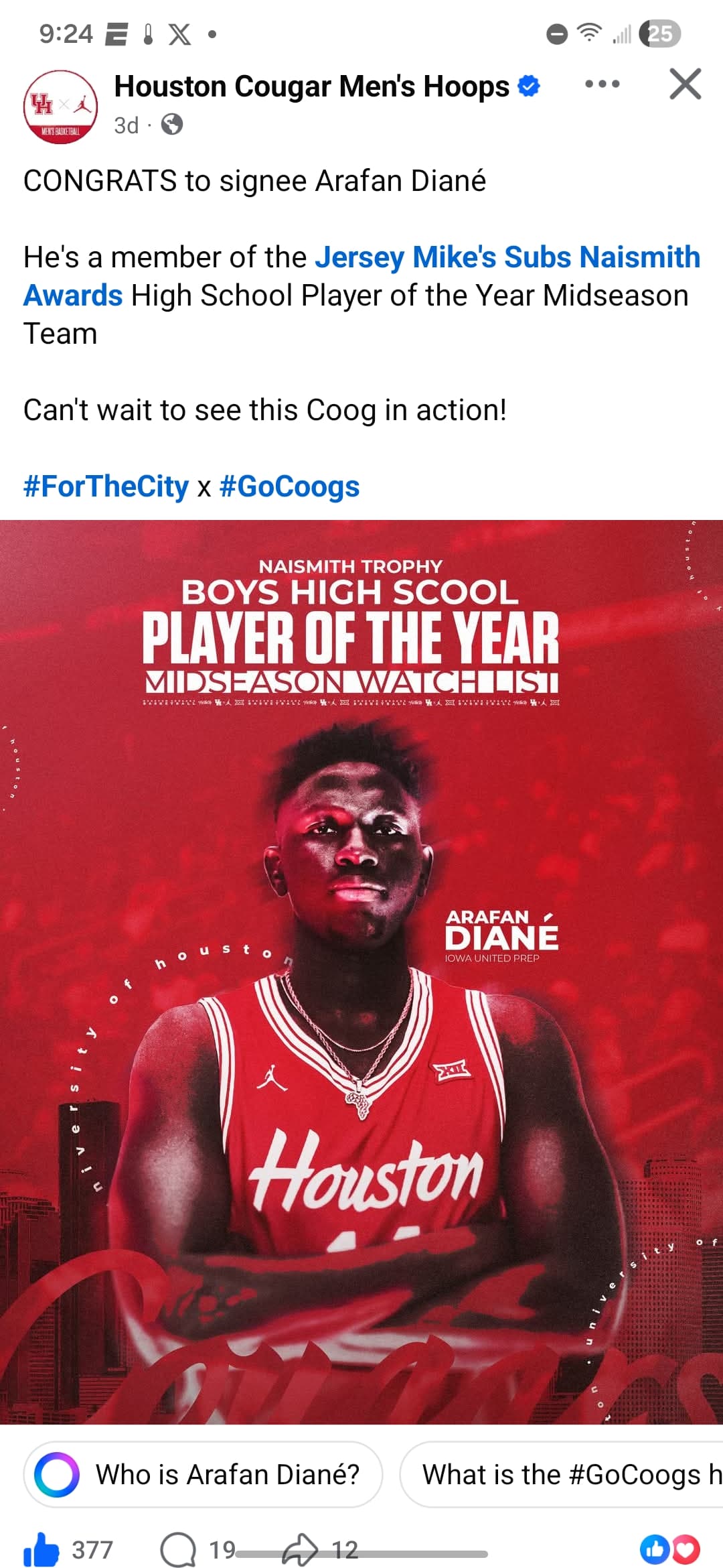 So I do think Diane is making the right choice to come to UH. But we can’t dismiss the fact that the kid is going to be challenged like never before. He will be worked to a knub, and I’m excited to see what ya’ll can mold him into. All the credit in the world for the young man embracing that, it’s rare to see today!