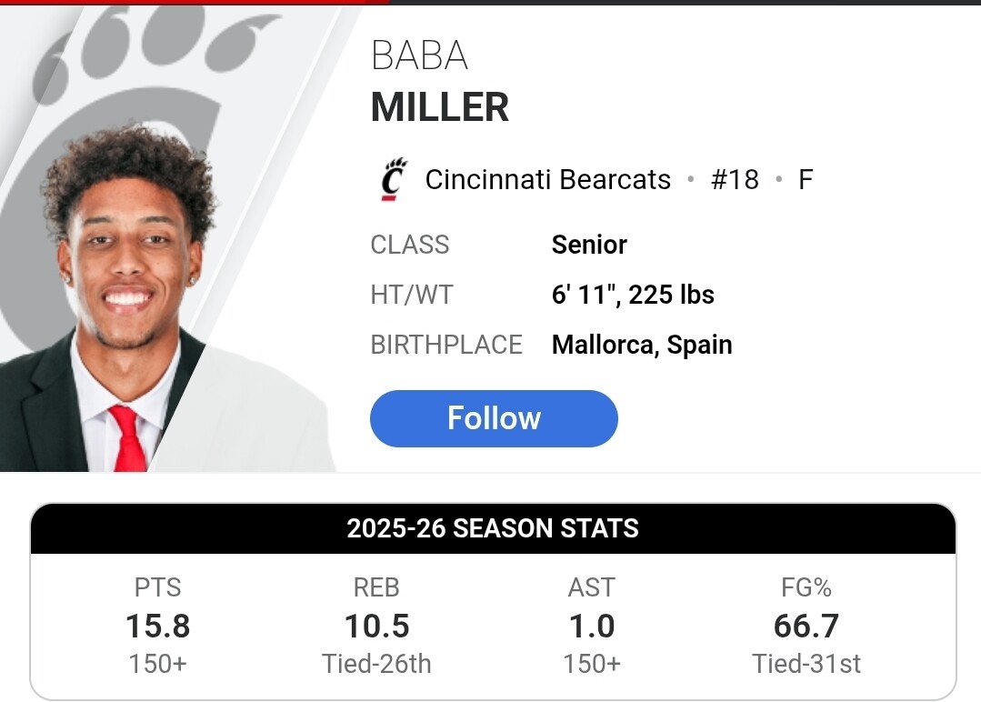 Cincy needs Abeav to be better than he has been. Again, @justinhub2003, Celestine is being used exclusively as a power forward at Cincy. The idea that it is because of the Haynes injury does not add up. You also lost Jizzle, all your guards were in foul trouble last game, and Celestine still did not sub in once for any of the guards.