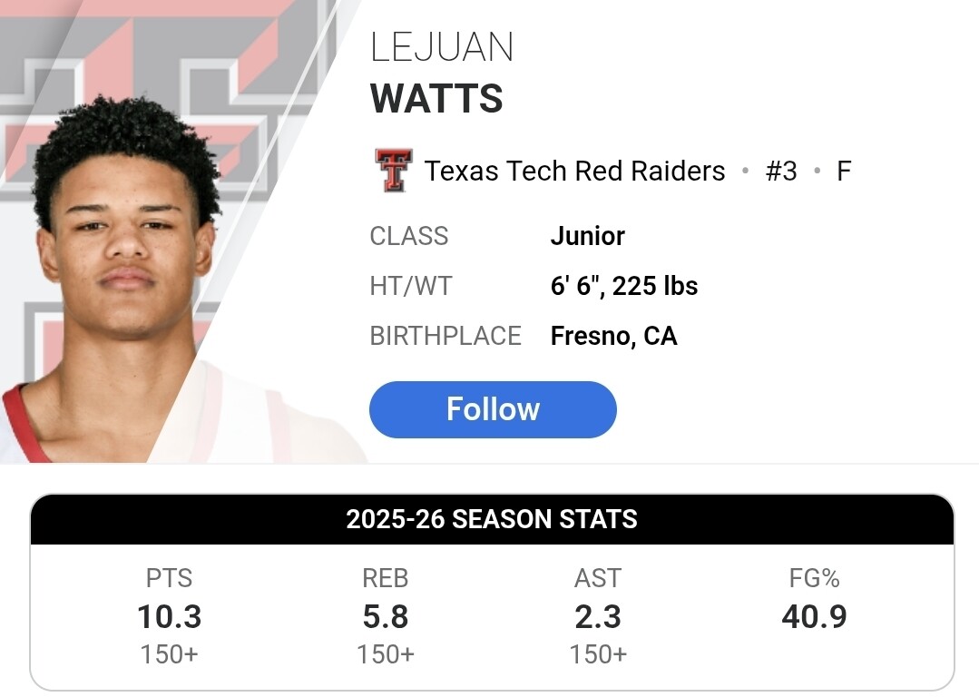 Theyve played 2 games since Purdue. Lejuan Watts, has played better, coming off the bench. 31 pts over his last 2 games