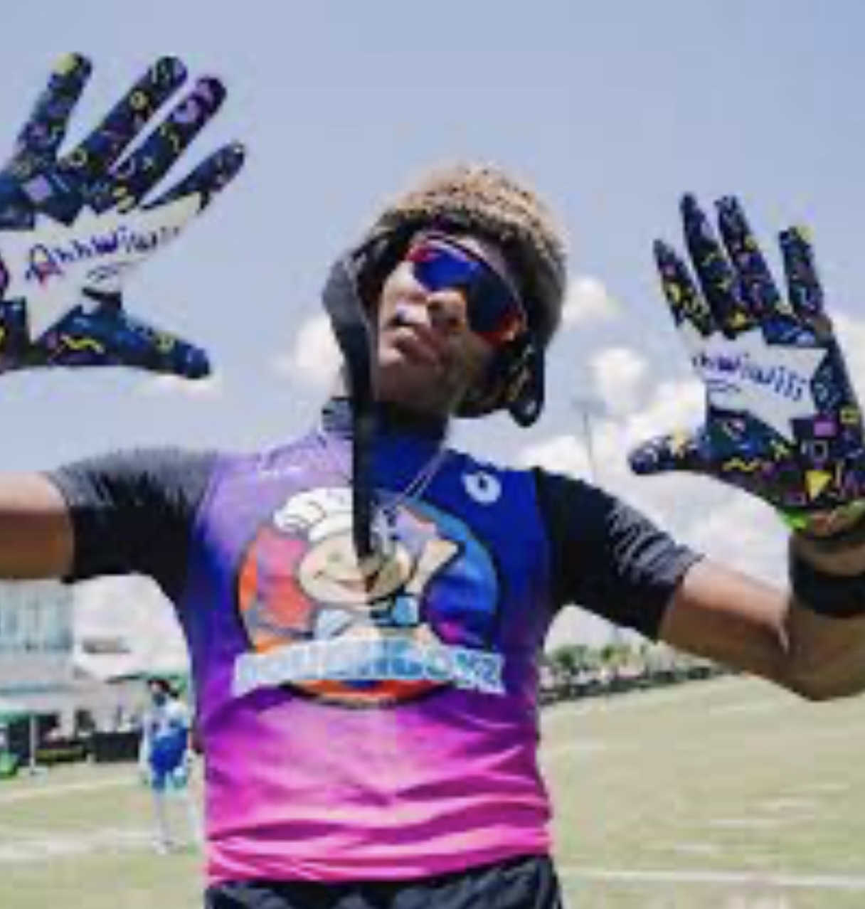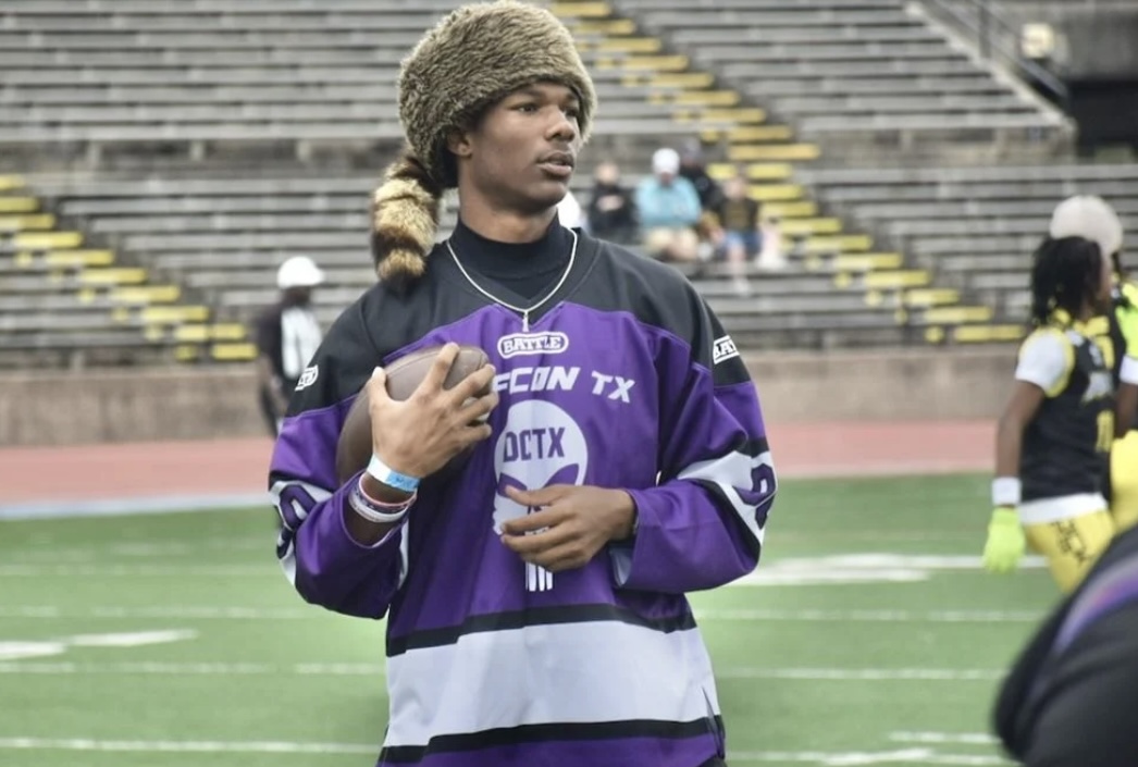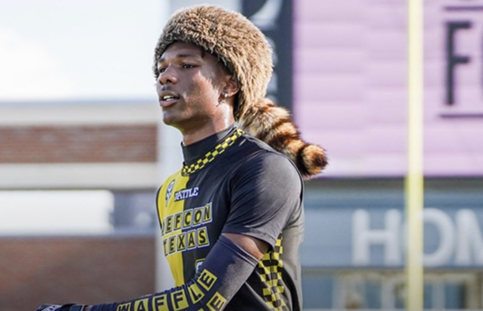 One of the All Star Games Henderson played on ESPN, I think it was the 7-on-7 one, Henderson played with the coonskin hat over his soft shell football helmet.