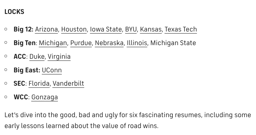the espn conferences don’t many A-S tier teams which is gonna hurt them come actual tournament time but that also means all the mediocre sec and acc teams will probably backdoor their way in while the middling big 10 and big 12 teams will be out ![]()