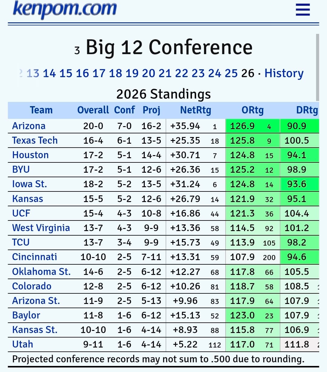 The Big 12 is so top heavy. The Top 6 teams are outstanding. After that there is a drop off.