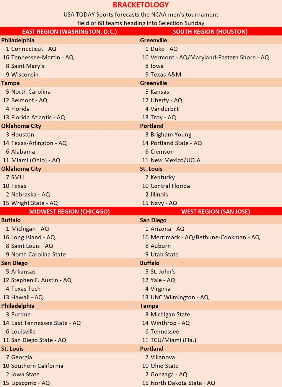 44 UCF [NET: 39] 2-4 3-0 5-0 5-0