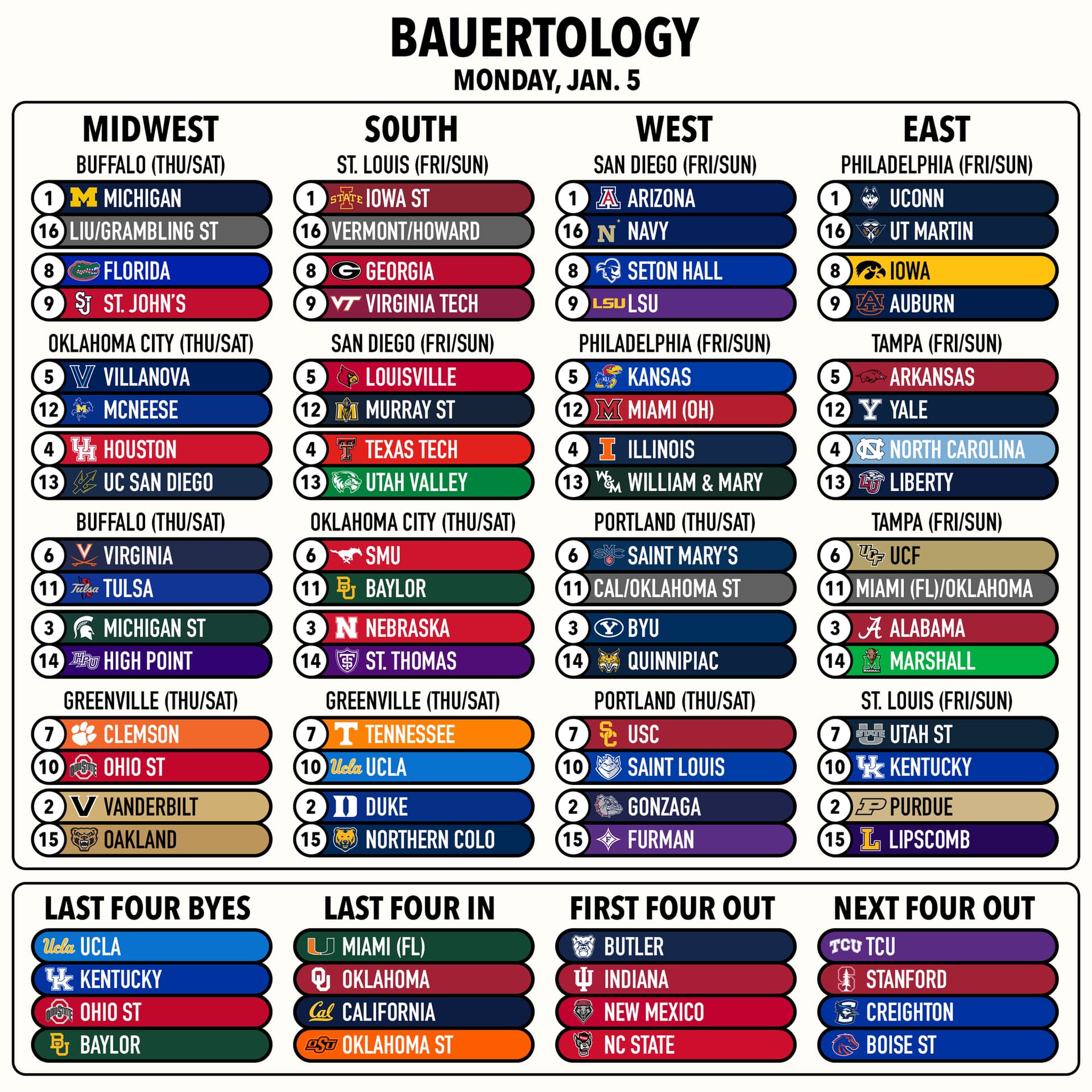 Same for Nebraska… would love to be stacked up in the Elite Eight with either Vandy or the Huskers… assuming they ever win a NCAA tourney game. ![]()
