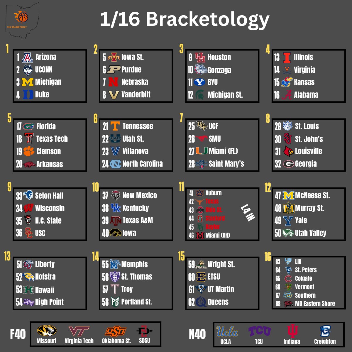 Finally a few brackets with us at a 2 seed! Thanks!