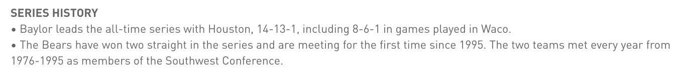 UH is 13-14-1 vs Baylor all time and 6-8-1 in Waco.