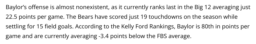 I’ve seen Baylor a couple of times. Their QB/WR play is very suspect