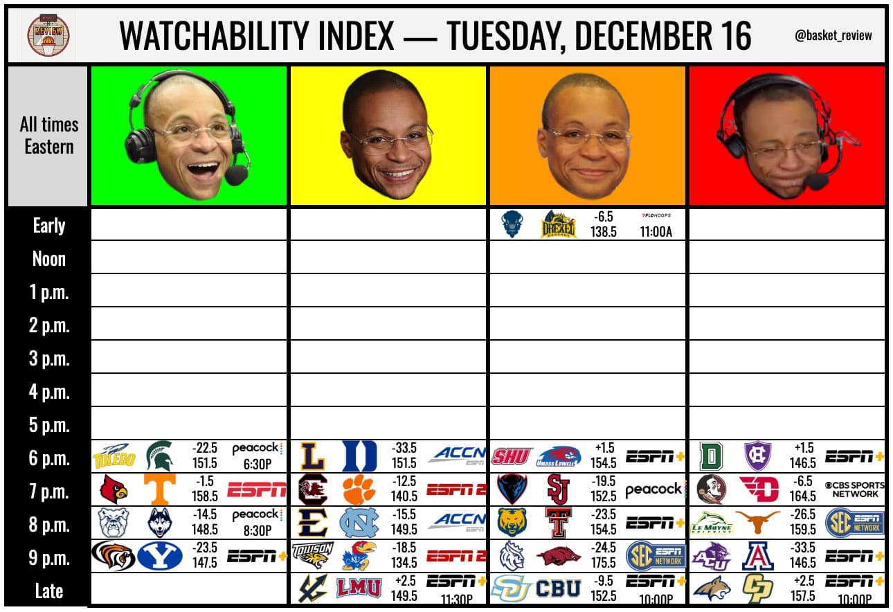 UH’s next opponent, Arkansas (8-2), plays a home game, Tuesday,12/16/25, 8:00 PM, against Queens Royals (5-6), a college from Charlotte, NC. (Full disclosure: I had never heard of Queens Royals and had to look it up.)