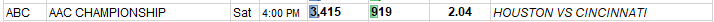 2015: 2.04 rating, ??? (Temple vs Houston)