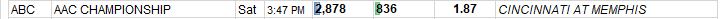 2018: 2.10 rating, 3.3m (Memphis vs UCF)