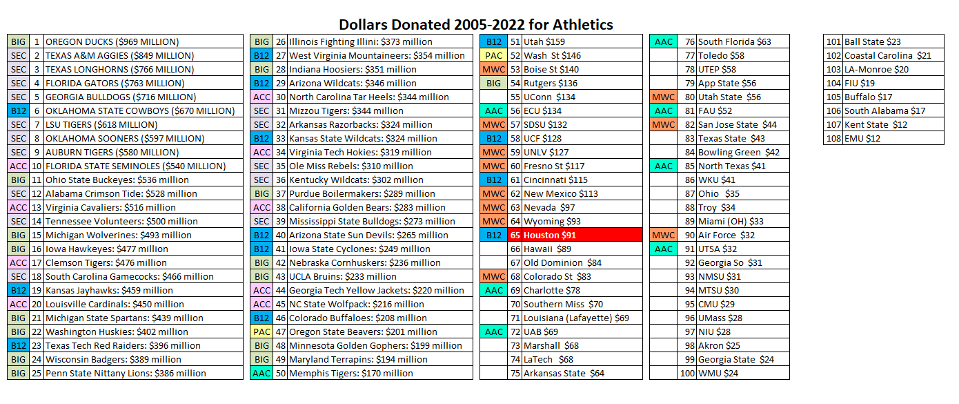 Houston Rise started 6/2022 had a goal of $150m for athletics. It was at $50m 5/2023
